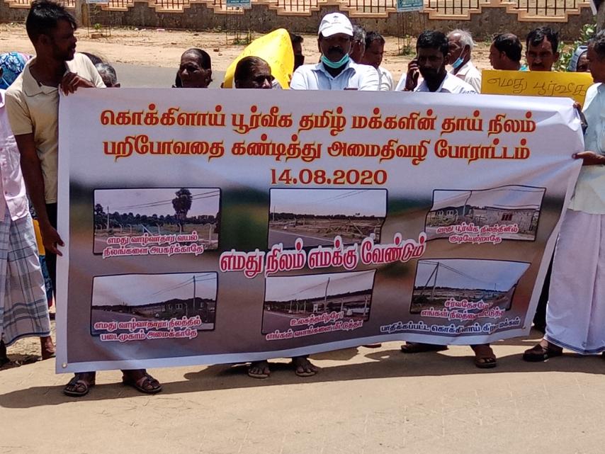 Attention drawing demonstration by people of Kokkilai against the robbing of lands
