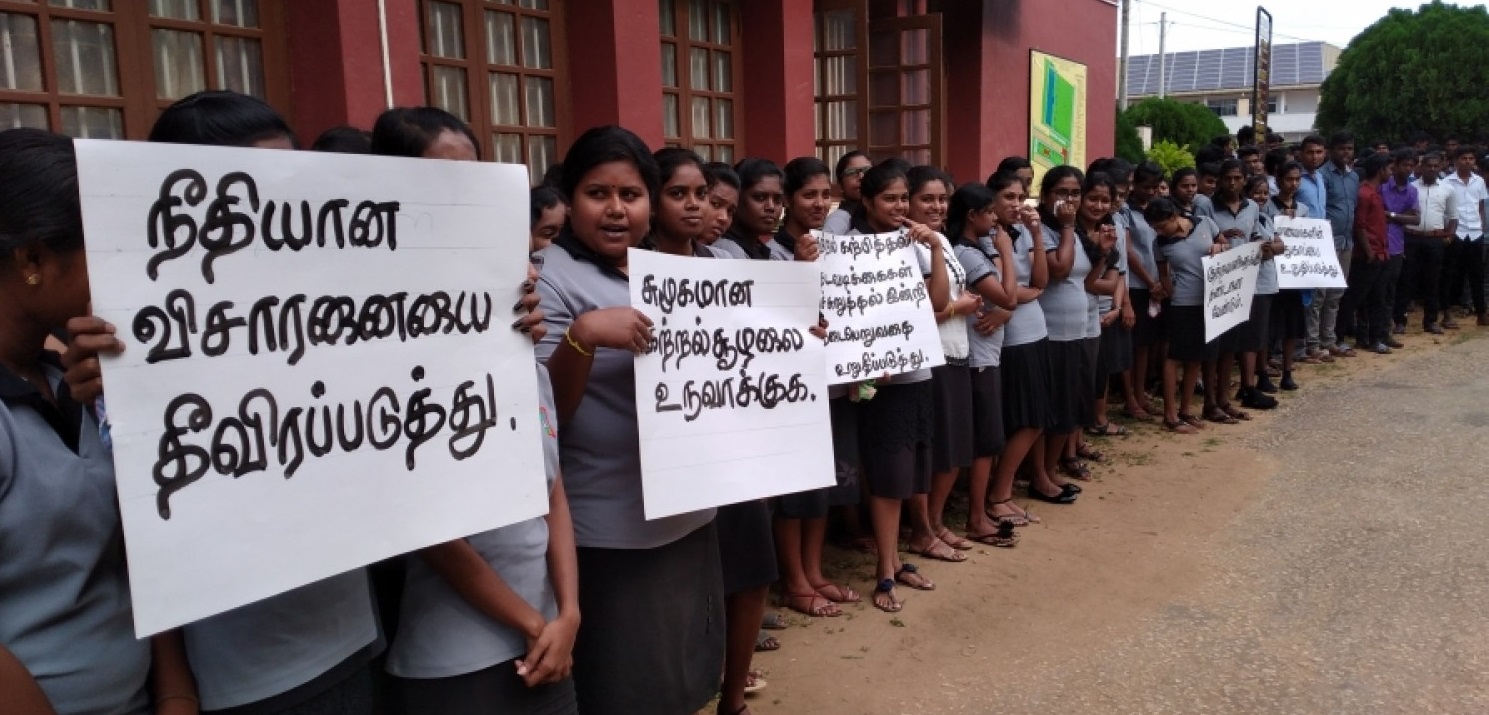 Jaffna Technical College students in demonstration calling for establishing environment to study